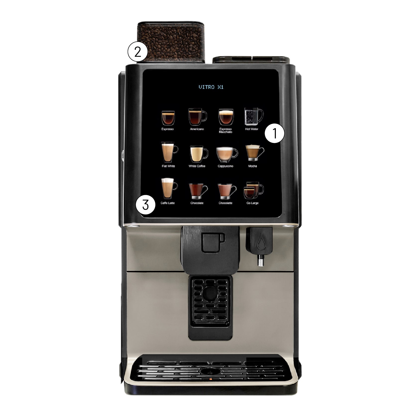- No. of coffee bean hoppers: 1