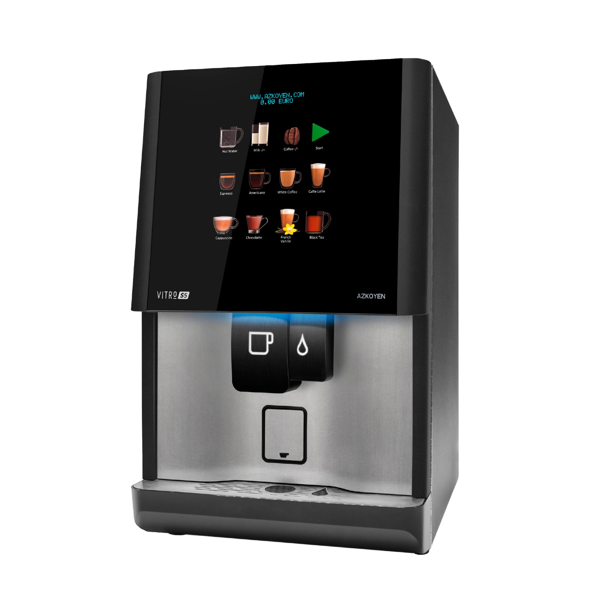 Sleek and modern, high-capacity, bean-to-cup coffee machine perfect for brewing a wide variety of premium hot beverages. This stand-alone solution boasts a user-friendly touchscreen interface and offers 12 different coffee and hot drink selections.